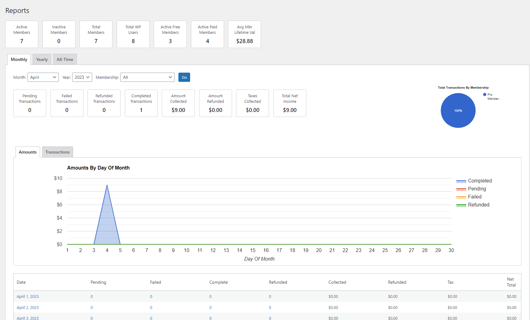 The value will be reflected in the MemberPress reports dashboard: