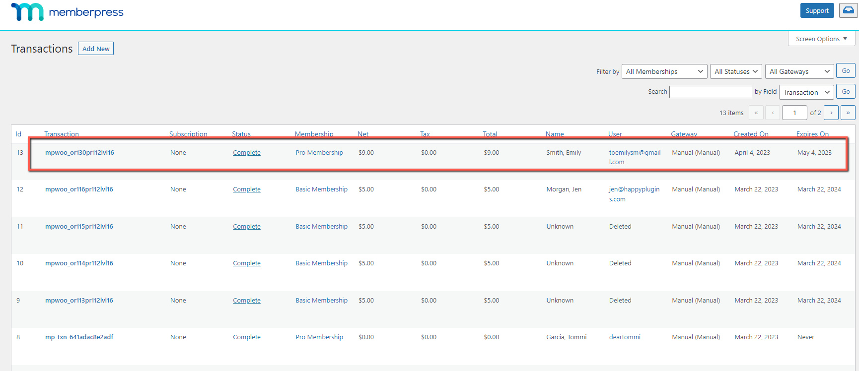 When a customer will purchase this membership product, a new MemberPress transaction will be created.